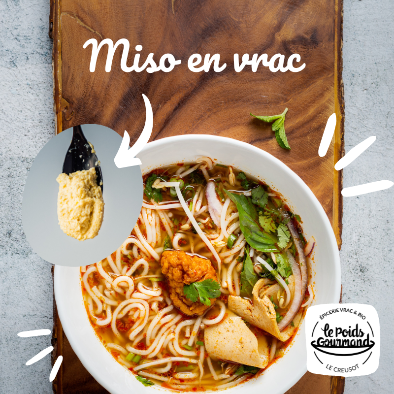 Pâte salée à base de soja, le miso est le résultat d’une fermentation lente et naturelle. Il mûrit en fût pendant au moins 10 mois et jusqu’à 5 ans. Véritable allié de notre santé, il est non pasteurisé, donc riche en probiotique, ainsi il préserve et renforce la flore intestinale. Pour le miso moyen de riz, KŪRA utilise du soja bio français, du sel IGP de Guérande et du riz 1/2 complet bio de Camargue.